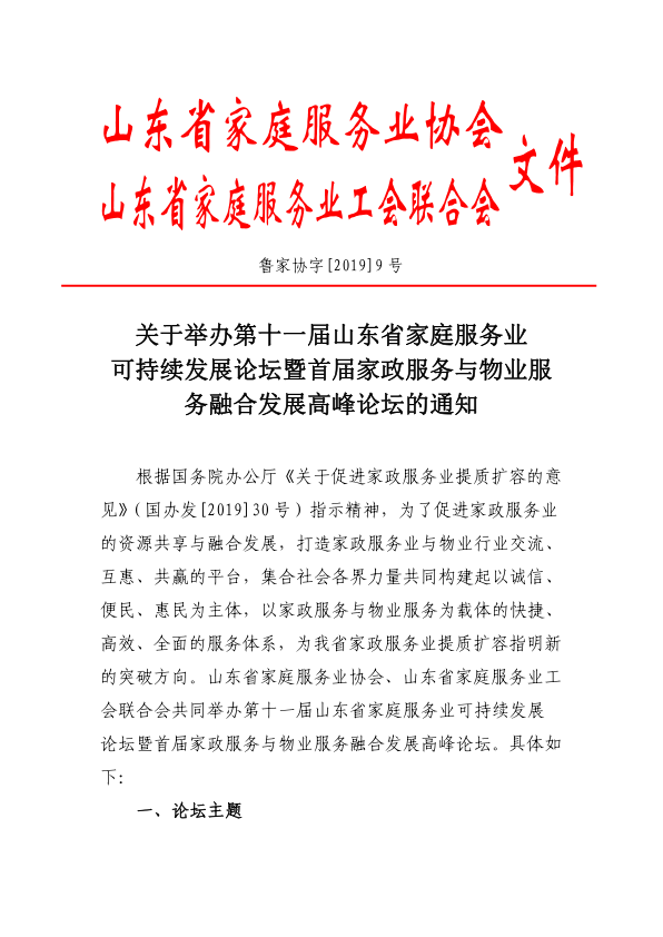 关于举办第十一届山东省家庭服务业可持续发展论坛暨首届家政服务与物业服务融合发展高峰论坛的通知